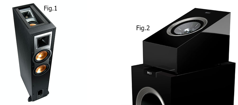 Esistono casse audio che nascono già con questa predisposizione (Fig1); mentre alcuni marchioffrono la possibilità di acquistare separatamente speaker specifici da posizionare sopra i diffusori (fig2).
