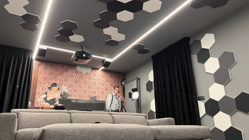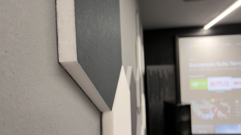 Eccoci a un altro punto altamente sottostimato da chiunque crei una sala cinema, sia che si tratti di un lavoro fai da te, sia che ci si rivolga a un professionista. Il trattamento acustico dell’ambiente sembra una di quelle voci fatte solo per gonfiare i preventivi, ma un buon trattamento acustico può effettivamente migliorare le prestazioni acustiche di una stanza. Attenzione, non stiamo parlando di insonorizzazione, il cui scopo è evitare che il suono entri od esci da una stanza (o quantomeno una parte del suono), ma di trattamento acustico, cioè dell’installazione di specifici moduli in vari materiali il cui scopo è abbattere potenziali problemi di riproduzione audio nella stanza.