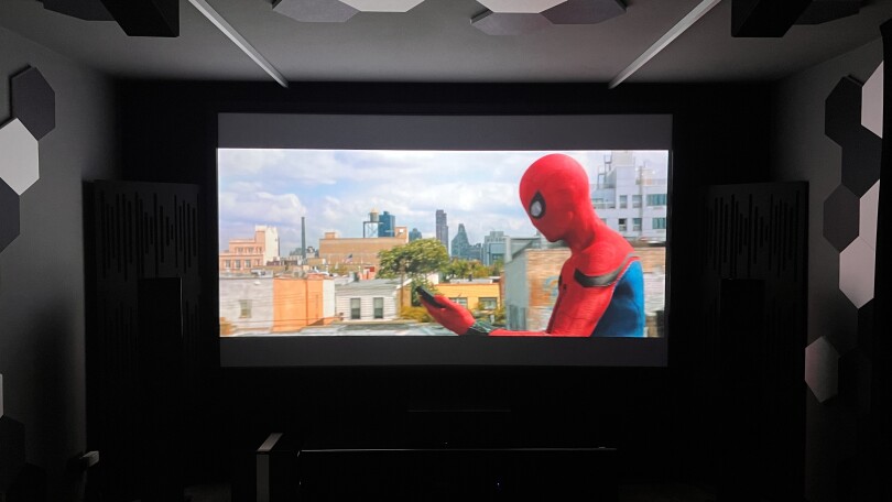 Scelto il proiettore, che per una sala cinema moderna dovrebbe avere almeno una risoluzione 4K nativa, bisogna interrogarsi sul tipo di schermo. La dimensione dello stesso è legata alla scelta del proiettore e della distanza di proiezione, due scelte che assieme determinano la massima dimensione dell’immagine proiettata. Mentre sulla tipologia, cioè uno schermo fisso o uno arrotolabile, dipende dalle esigenze: se avete creato una sala dedicata, spesso la scelta ricade su uno schermo fisso, che è anche più economico. Se invece avete dedicato una porzione di una sala o magari volete ugualmente posizionare una TV, potreste optare per un telo arrotolabile da aprire alla bisogna. Esistono diversi teli, i più classici sono quelli che si srotolano dall’alto, ma esistono anche soluzioni che si estendono dal pavimento.